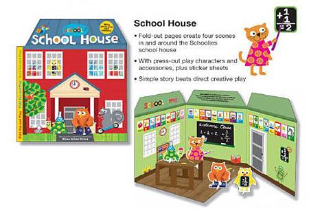 “School House”這是一本充滿surprise,兼具學習與遊戲功能的3D立體書,很適合3歲以上孩子;School House 顧名思義,書本內頁是以完整呈現學校教室樣貌為主,分別有School Time,Lunch Time & Art Class 教室,別具巧思的設計讓書本立起、整合頁面後就是一間孩子上課的教室,在立體書的空間裡,孩子可以很清楚看到教室裡櫃子上擺放的教具,像是尺、書本、蠟筆,以及牆面上的教室布置,有時鐘和英語字母卡;鏤空可以透進光線的窗戶和可以開關的門都讓教室更栩栩如生呈現在孩子面前;每一間教室的頁面都會說明擔任這節課的老師是誰,還有要請孩子找到老師Mr. Meow和學生,那麼老師和學生都在那裡呢?書本附有一只精美的paper bag,打開袋子就可以看到許多動物學生,像是每天都會念一本書的Wally Worm,還有喜歡音樂和戲劇的瓢蟲雙胞胎姊妹Lydia & Leeza,每一位學生都有其專長和興趣,就像每一位獨一無二的孩子,這些人物圖卡都可以由平面組合成立體可站立的人物,而且書本的設計很貼心,在首頁就有人物介紹,讓孩子可以很快的認識所有的學生、老師、校車司機等等。教室的背景搭配可移動式的人物圖卡,讓孩子可以盡情發揮想像力和創造力玩角色扮演遊戲,有兄弟姊妹的孩子,還可以邀請家人一起加入,是一本讓孩子玩得開心且充滿趣味的遊戲書。http://www.pcstore.com.tw/kidschool/M14374122.htm