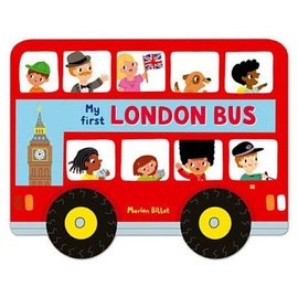 “My First London Bus”是一本以英國bus外觀為書本造型的遊戲書,書中一開始就以搭乘觀光巴士在倫敦遊覽的旅客為主角,一路上,孩子可以藉由乘客想下車觀光的景點來了解倫敦舉世聞名的地標景觀與代表性人物,例如:倫敦之眼、英國女王、英國皇家衛兵、自然史博物館等等,由於繪圖風格簡明輕快,用色鮮明對比,爸爸媽媽陪著孩子一起閱讀時,可以跟著孩子搜尋、發現意想不到的細節就藏在每一頁的圖畫裡;這本書最吸引孩子目光的,便是書本下方的四個車輪,由於車輪採取活動式設計,讓bus造型書可以在平坦的桌面上滾動輪子向前進, 每個孩子都嚮往自己可以開著屬於自己的車車,到處趴趴go,有了這本My First London Bus孩子不但可以學習英語,認識英國著名的人、事、物,還可以掌控這台英國Bus,到處行走遊戲喔!