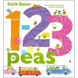 在數學概念的啟蒙部分,“1, 2, 3 Peas” 這本書很適合正想學習number counting & recognizing 的孩子,更重要的是它帶給孩子許多想像空間與創意學習,每個數字都有專屬自己的呈現方式和設計風格,除了阿拉伯數字,還有English Words搭配,仔細觀察每個數字的周圍都有符合數字的綠色豆豆數量,這些豆豆都具有擬人化的表情和動作,可以提昇孩子的觀察能力,每個數字還有搭配一個簡單的rhyme,讓孩子可以朗朗上口,並且透過圖畫的引導,可以讓孩子輕鬆快樂學習到許多動作字彙;這本數數的書籍是很具有挑戰性的,當數字來到20之後,30~100,每個跨頁都可以讓孩子認真學習數數,數數過程中也能充滿樂趣,特別是創意的設計與繪畫風格,都能啟發孩子無限的想像力與創意發展!