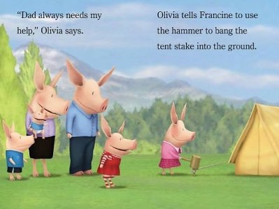 其他5本讀本主題分別有Olivia Goes Camping,Olivia Takes a Trip,Olivia and the Snow Day,Olivia and Her Ducklings,Olivia Trains Her Cat,這些故事都非常精采有趣,很適合4-8歲孩子閱讀,與文字搭配的插圖,十分生動活潑,把Olivia 每一個俏皮逗趣的動作都能栩栩如生的呈現,讓孩子閱讀起來,更添樂趣,這絕對會成為孩子們最愛的讀本系列!
