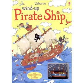 wind-up Pirate Ship,是一本結合模型玩具、富知識性學習的遊戲操作書,全書有3組軌道,讓孩子能親身體驗模型海盜船在海上馳騁的景象;翻開書本,第一個跨頁是海盜船在啟航之前,停泊港口碼頭的場景,孩子透過閱讀,能學習到,每一次船隻要出發、展開探險之前,船上需要準備多少食糧和物品,航行出發之後,要根據藏寶地圖,尋找隱藏在世界各地的寶藏,接著,就是孩子的遊戲時間! 孩子可以拿起有裝置發條的模型海盜船,把海盜船上好發條,放置到標示start軌道上,海盜船就會自動往前行進,在海面上巡遊探險,非常刺激好玩!