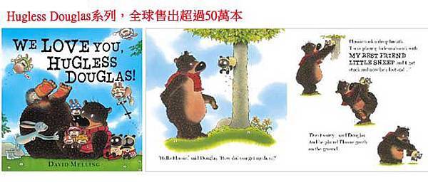 我的孩子是獨生女,雖然很懂得安排自己的時間,也時候一個人也能玩得很開心,但我可以感受到她非常期待進入團體生活,當然最想要就是認識新朋友,想要有自己的好朋友,可是發現她在群體之中,總是不輕易主動開口和其他孩子說話或是互動,總是在等待,讓我想起這本故事書的主角-Douglas,這一隻熊也想要有一個好朋友,想要和好朋友一起分享、一起玩耍,有一天,他無意間救了一隻小羊,也幫著他一起找到他的朋友,雖然一路上有很多動物們都熱情邀約Douglas一起來玩,但是因為他急著幫助小羊,片刻都沒有停留,最後小羊找到他的好朋友了,而Douglas,他一路上遇到的動物們都飛奔到他眼前,都搶著要當他的好朋友,一句We Love You, Hugless Douglas! 讓大家擁抱在一起!