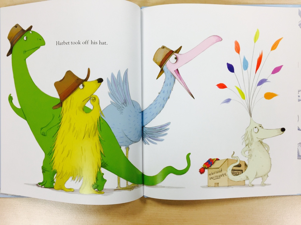 作者十分的有創意,創造出了各種不同的帽子,家長可以請孩子形容這些帽子,訓練他的表達能力喔!